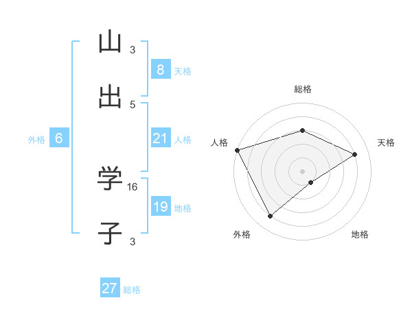 山出 学子さんの総格は27画の3点!