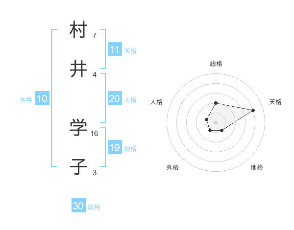 村井 学子さんの天格は11画の4点!