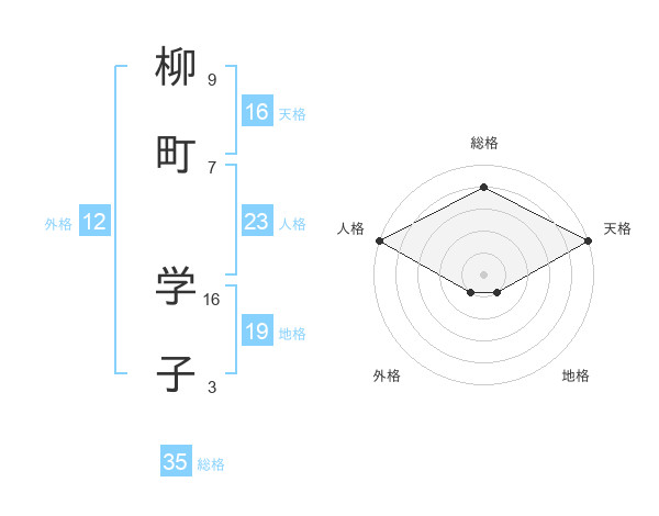 柳町 学子さんの天格は16画の5点!