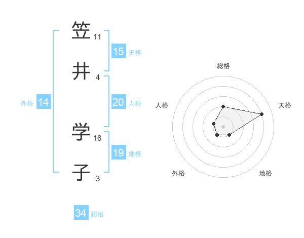 笠井 学子さんの外格は14画の1点!