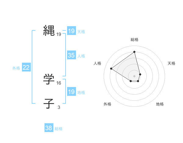 縄 学子さんの総格は38画の4点!