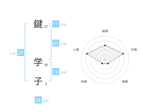 鍵 学子さんの天格は17画の4点!
