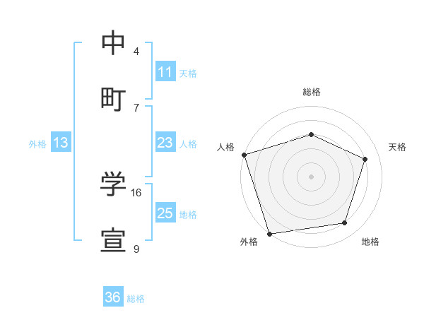 中町 学宣さんの天格は11画の4点!