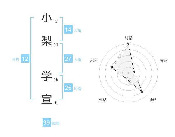 小梨 学宣さんを姓名の画数から五運を鑑定