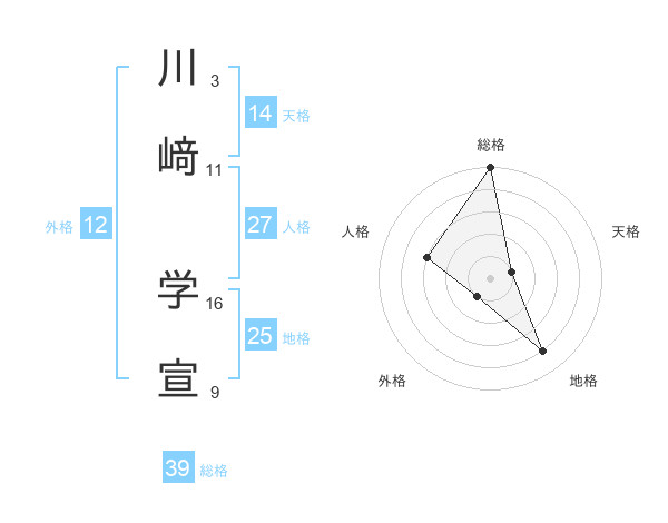 川﨑 学宣さんの総格は39画の5点!