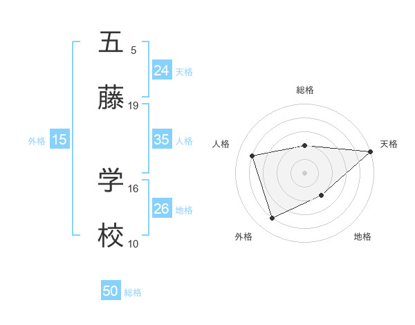 五藤 学校さんの総格は50画の2点!