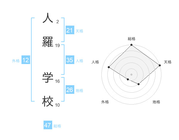 人羅 学校さんの総格は47画の5点!