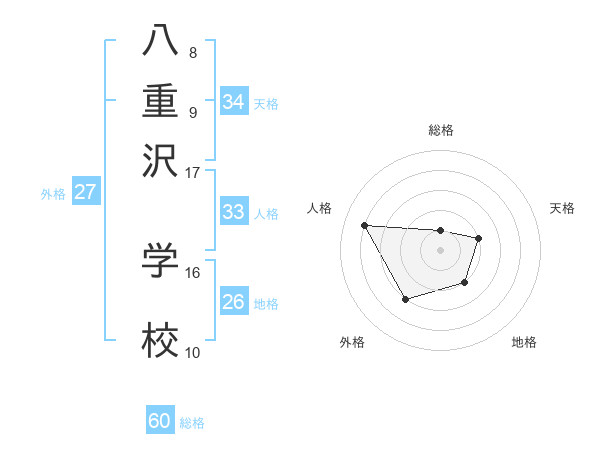 八重沢 学校さんの総格は60画の1点!