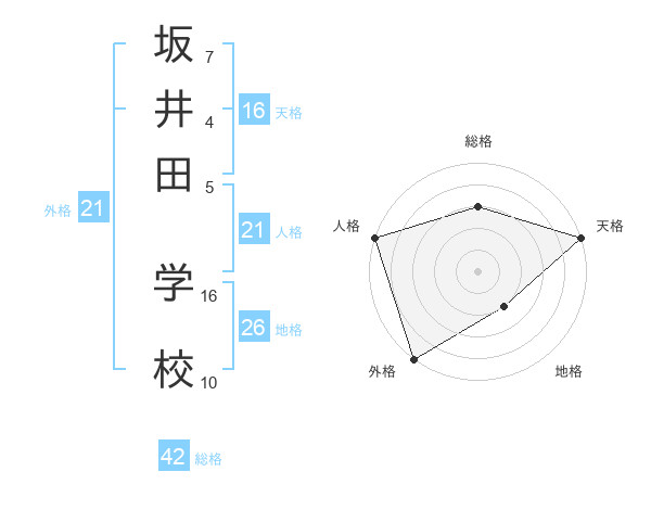 坂井田 学校さんを姓名の画数から五運を鑑定