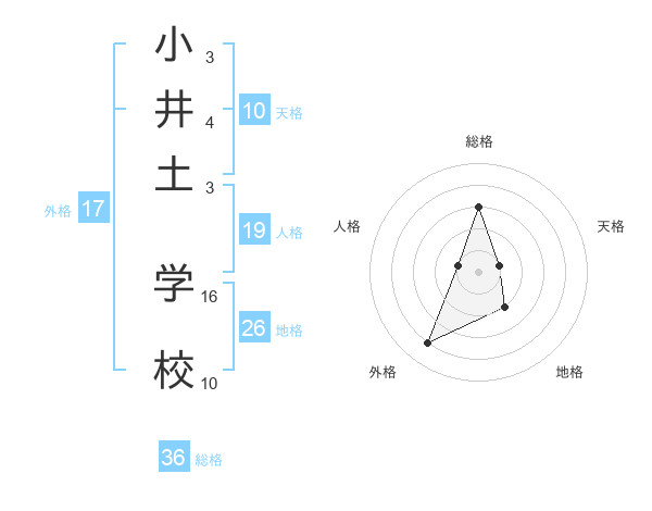 小井土 学校さんの総格は36画の3点!
