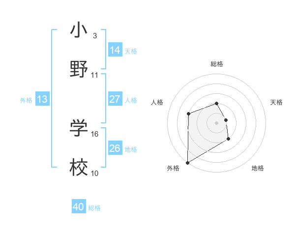 小野 学校さんの総格は40画の2点!
