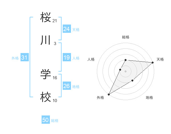 桜川 学校さんの総格は50画の2点!