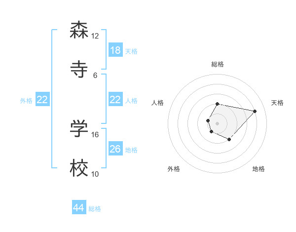 森寺 学校さんの総格は44画の2点!