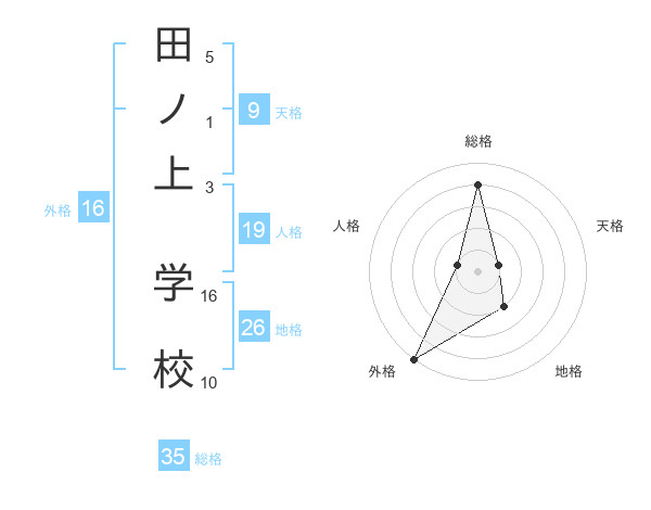 田ノ上 学校さんの総格は35画の4点!