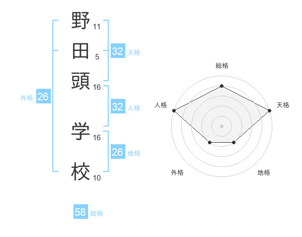 野田頭 学校さんを姓名の画数から五運を鑑定