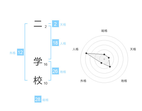 二 学校さんの総格は28画の1点!