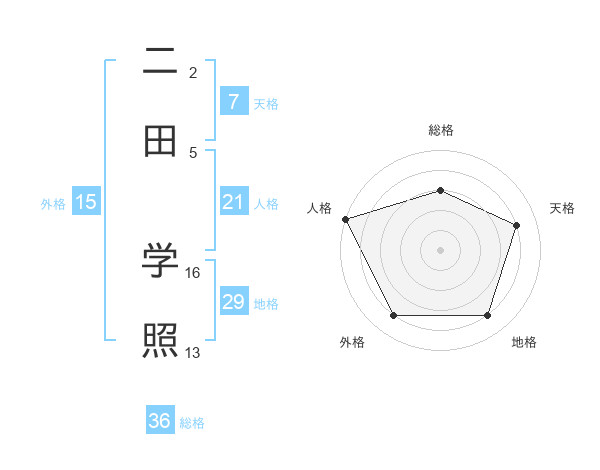 二田 学照さんの人格は21画の5点!