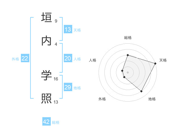 垣内 学照さんの天格は13画の5点!