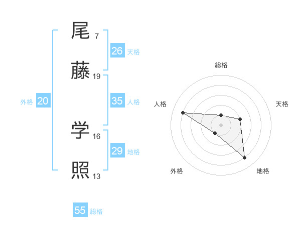 尾藤 学照さんを姓名の画数から五運を鑑定