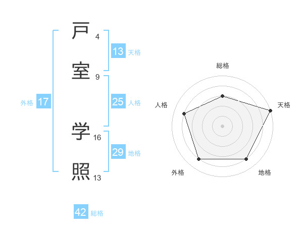 戸室 学照さんの外格は17画の4点!