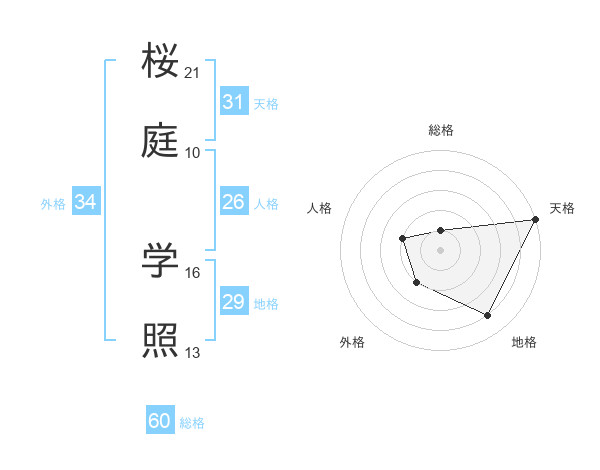 桜庭 学照さんの総格は60画の1点!