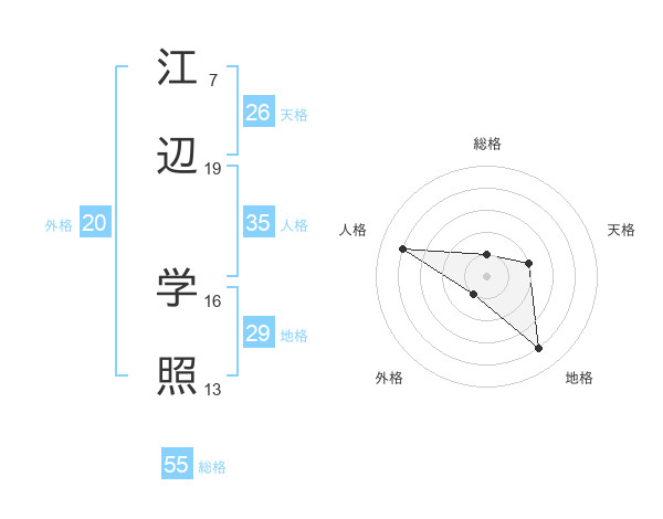 江辺 学照さんの総格は55画の1点!