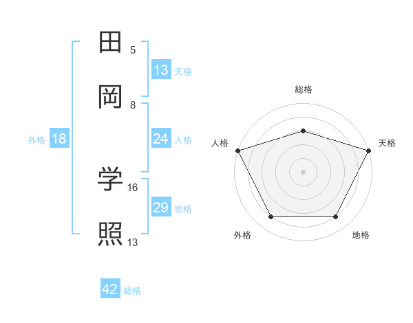 田岡 学照さんの天格は13画の5点!