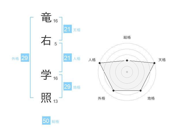 竜右 学照さんの総格は50画の2点!