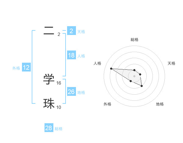 二 学珠さんの総格は28画の1点!