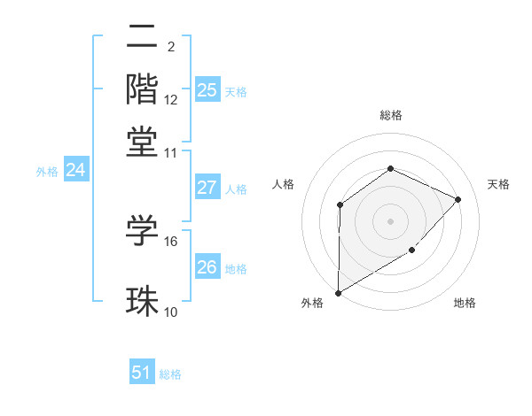 二階堂 学珠さんを姓名の画数から五運を鑑定