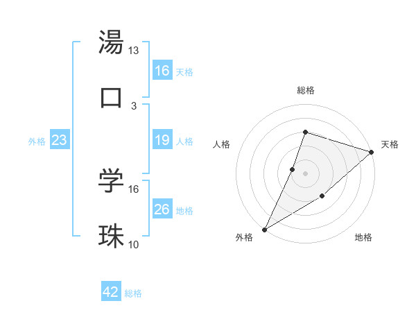 湯口 学珠さんの天格は16画の5点!