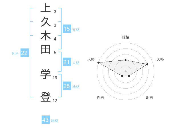 上久木田 学登さんを姓名の画数から五運を鑑定