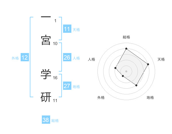 一宮 学研さんの総格は38画の4点!