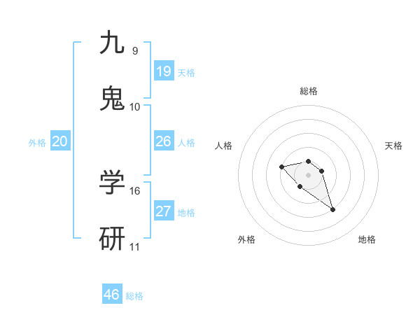 九鬼 学研さんを姓名の画数から五運を鑑定