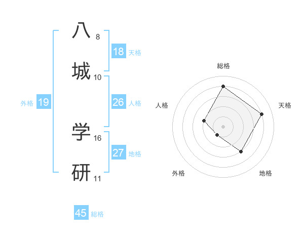 八城 学研さんの総格は45画の4点!