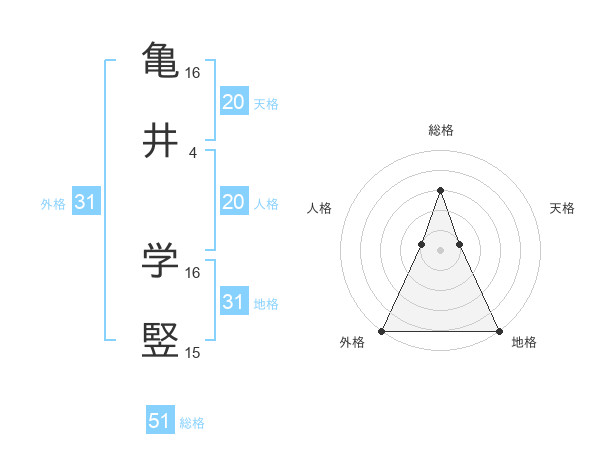 亀井 学竪さんを姓名の画数から五運を鑑定