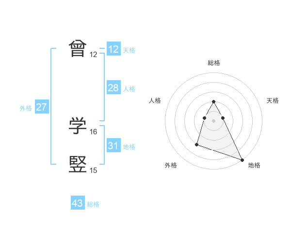 曾 学竪さんの総格は43画の2点!