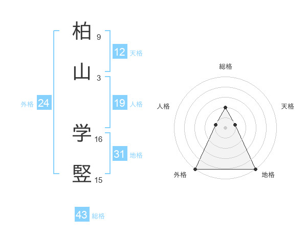 柏山 学竪さんの総格は43画の2点!