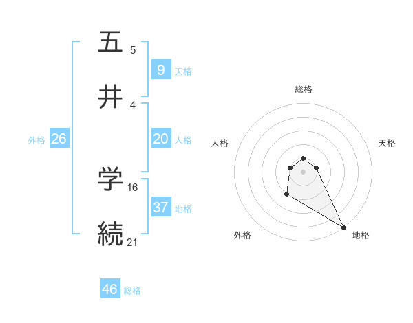 五井 学続さんの地格は37画の5点!