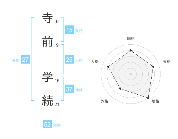 寺前 学続さんの総格は52画の4点!