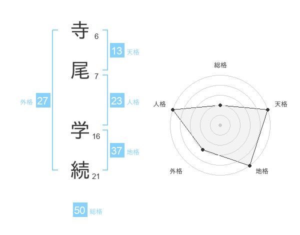 寺尾 学続さんの総格は50画の2点!