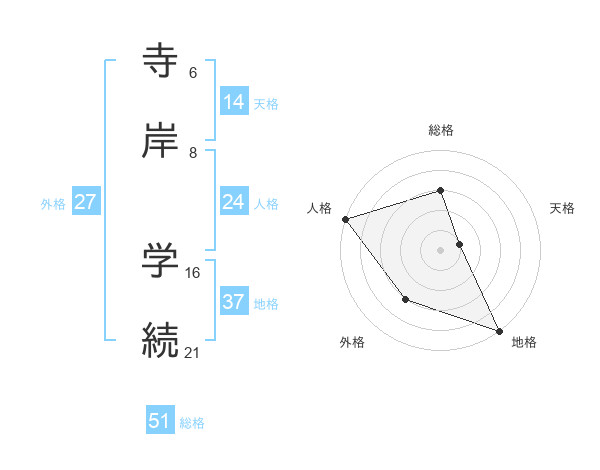 寺岸 学続さんの総格は51画の3点!