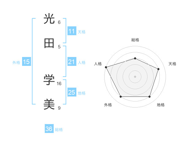 光田 学美さんの天格は11画の4点!