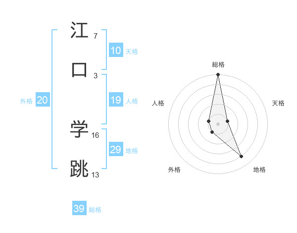 江口 学跳さんの総格は39画の5点!