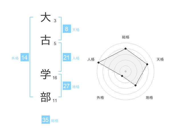 大古 学部さんの総格は35画の4点!