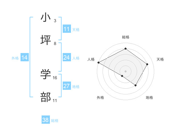 小坪 学部さんの総格は38画の4点!