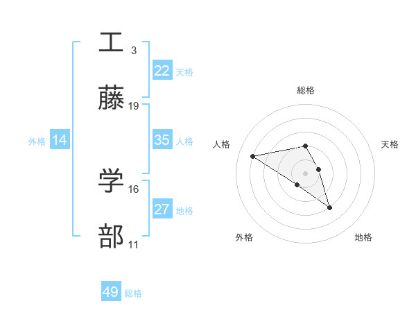 工藤 学部さんの天格は22画の1点!