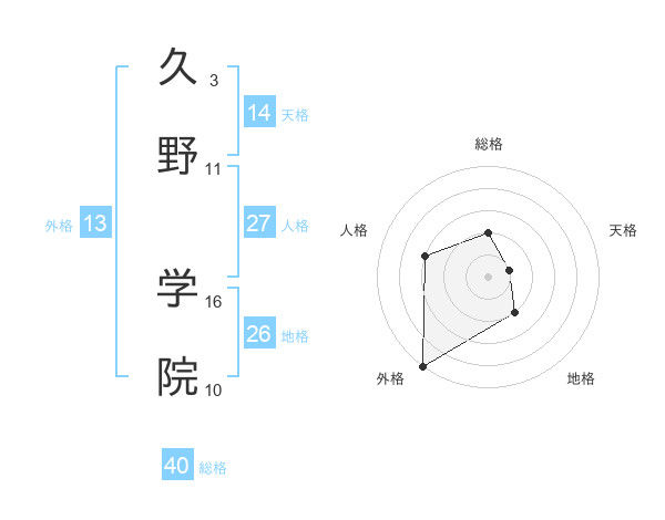 久野 学院さんの外格は13画の5点!