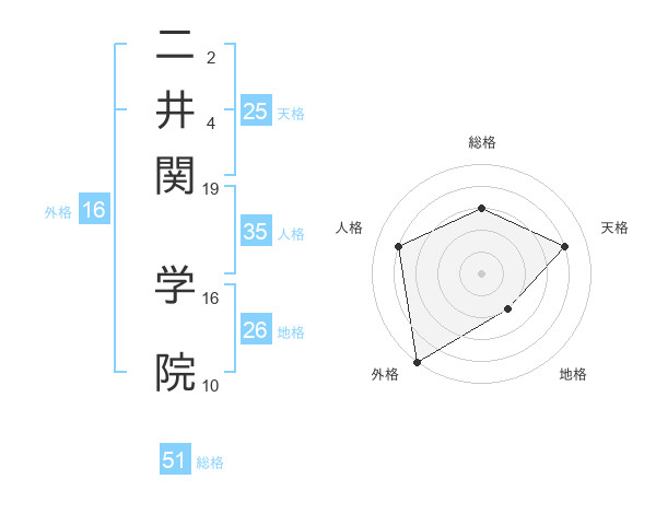 二井関 学院さんの総格は51画の3点!