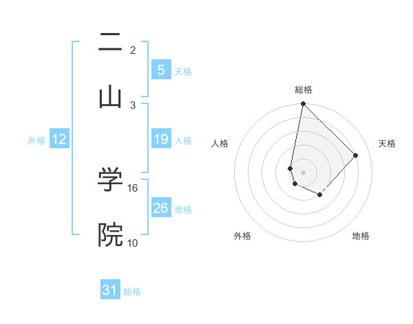 二山 学院さんの総格は31画の5点!